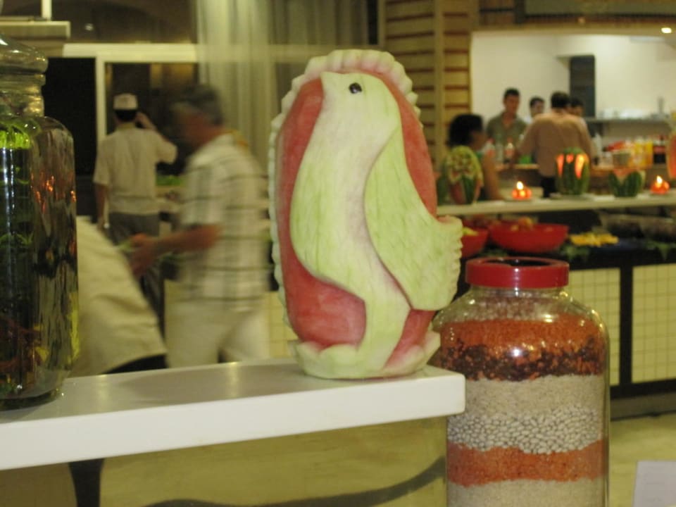 Geschnitzte Figuren am Galaabend