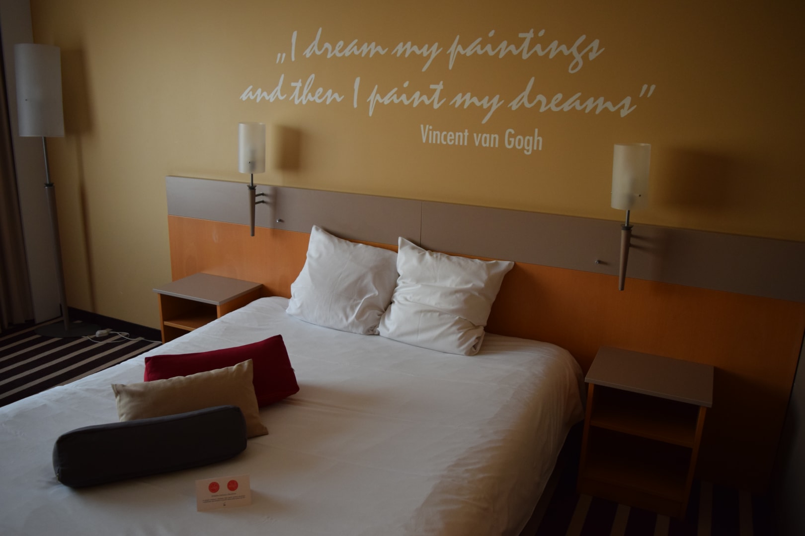 Spruch an der Wand über dem Bett