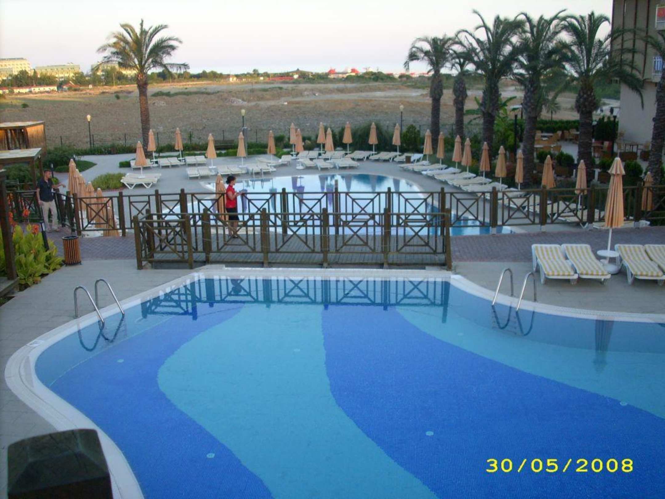 PoolBlick auf den mittleren und unteren Pool. Im Hintergrund das Niemandsland hinter dem Novum in Richtung Strand.