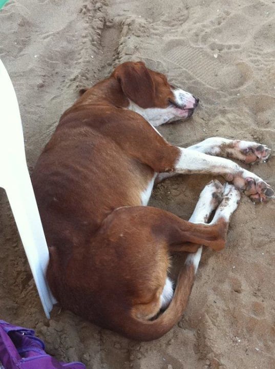 Dieser Hund hat erst mal ne Runde geschlafen bei uns an der Liege.