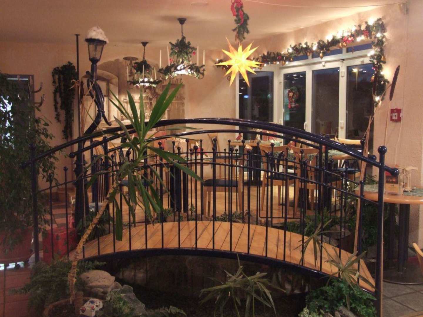 kleiner See mit Brücke im Restaurant