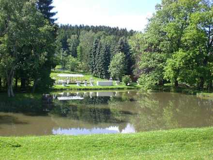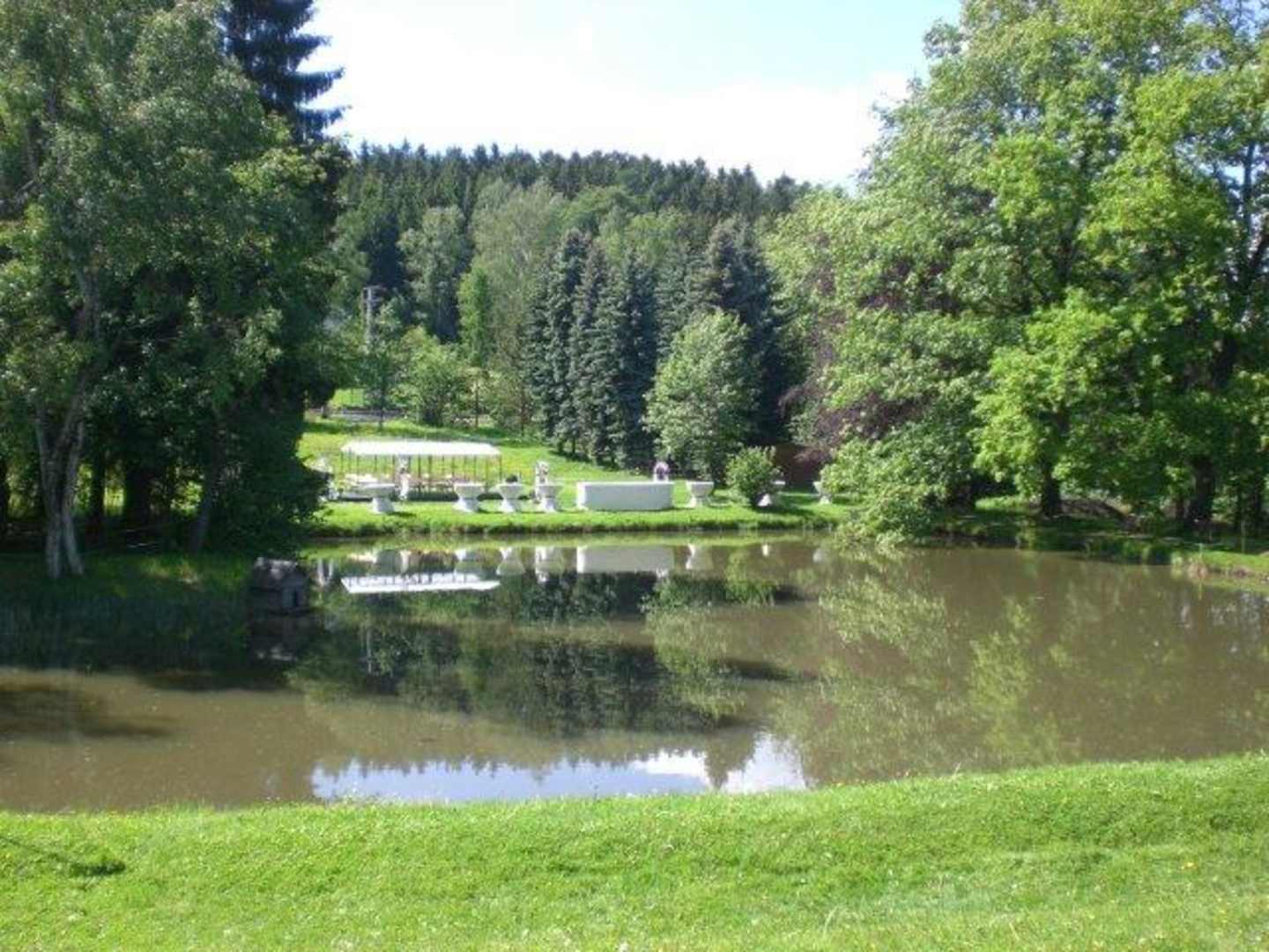 Blick über den TeichBlick über den Teich zum Hochzeitspavillon, wo freie Trauungen durchgeführt werden können