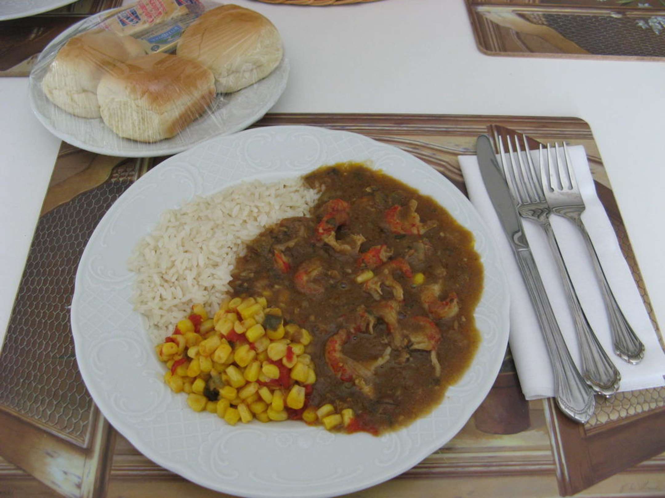 Oak Alley Plantation: da an einem Tag das Restaurant geschlossen war, konnte man das Essen vorbestellen, das dann im Cottage bereitgestellt wurde