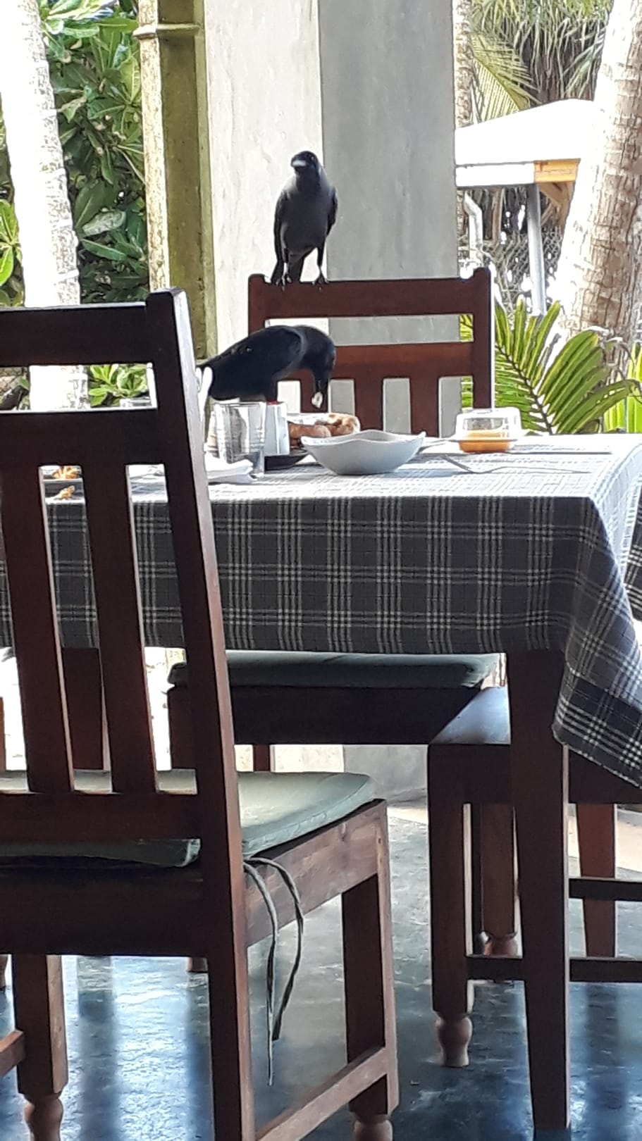Ansicht spricht für sich selber. Das Personal hat die Vögel nicht aufgescheucht oder die auf den Boden gezogenen Reste aufgehoben. Vielmehr wurde entspannt beobachtet und gewartet bis die Vögel alles "weg geräumt" hatten.