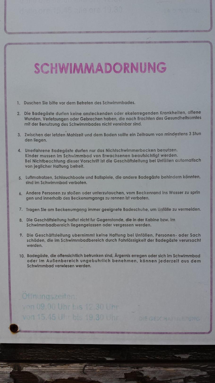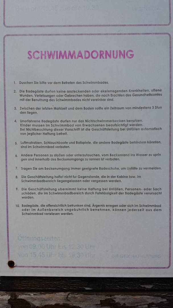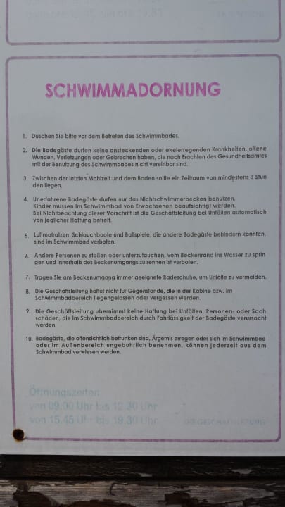 Badeordnung, 3h nach dem Essen nicht schwimmen!