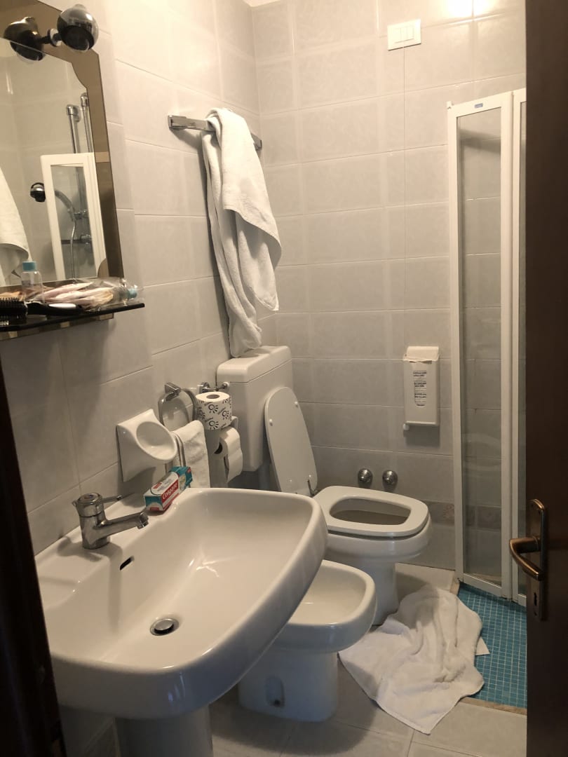 Winziges Bad, wenn man genau hinsieht, dann sieht man das die Duschtasse genau neben dem WC abschließt