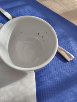 Überall Dreck. Schmutzige Tassen, schmutziges Besteck. Schimmel in Kuchen.