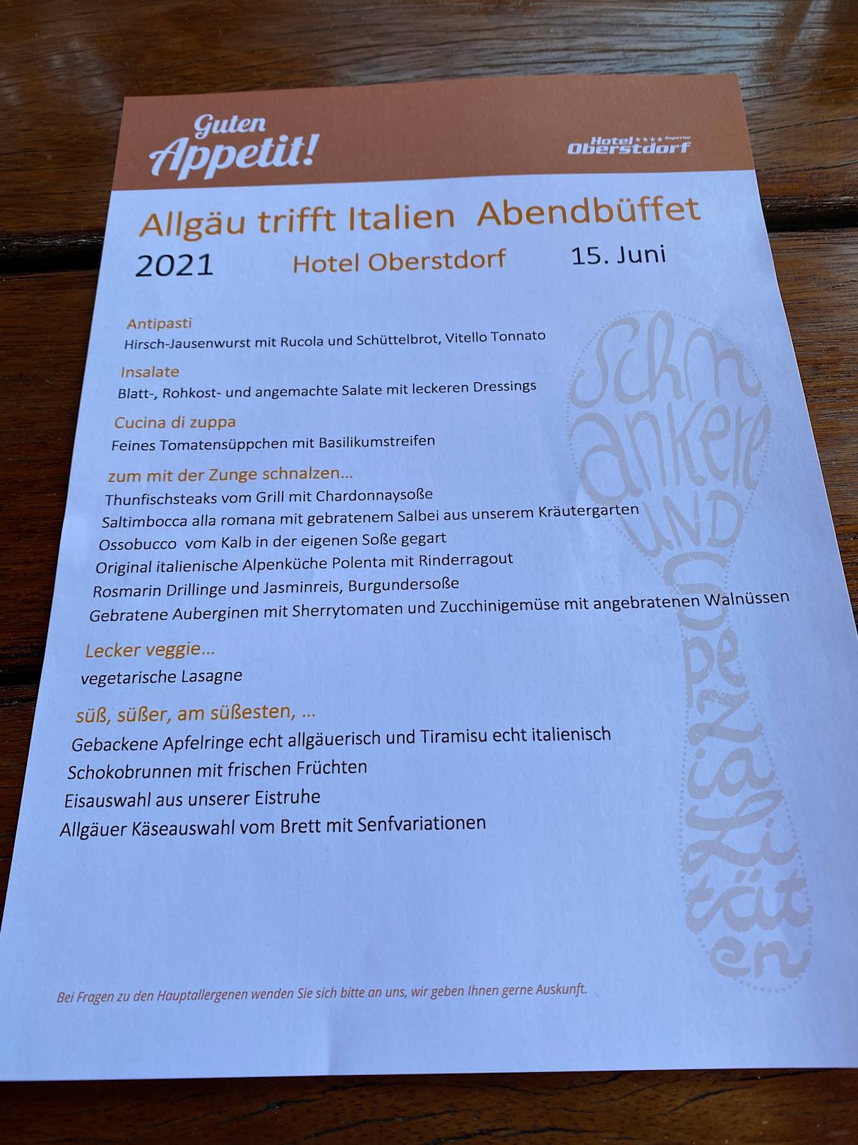 Menukarte Abendbüffet 15.Juni