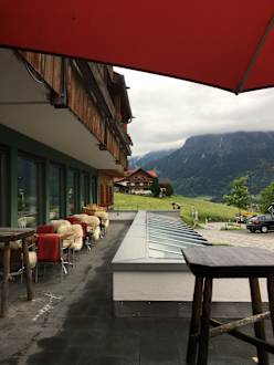 Sitzplätze vor dem Hotel