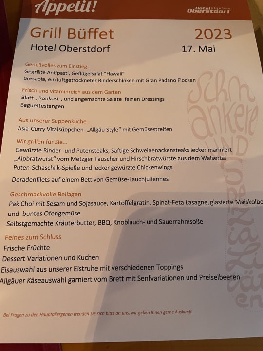 Angebot zum Abendessen