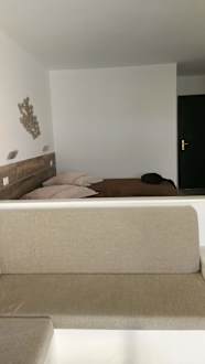 Blick vom Couchbereich auf den Schlafbereich