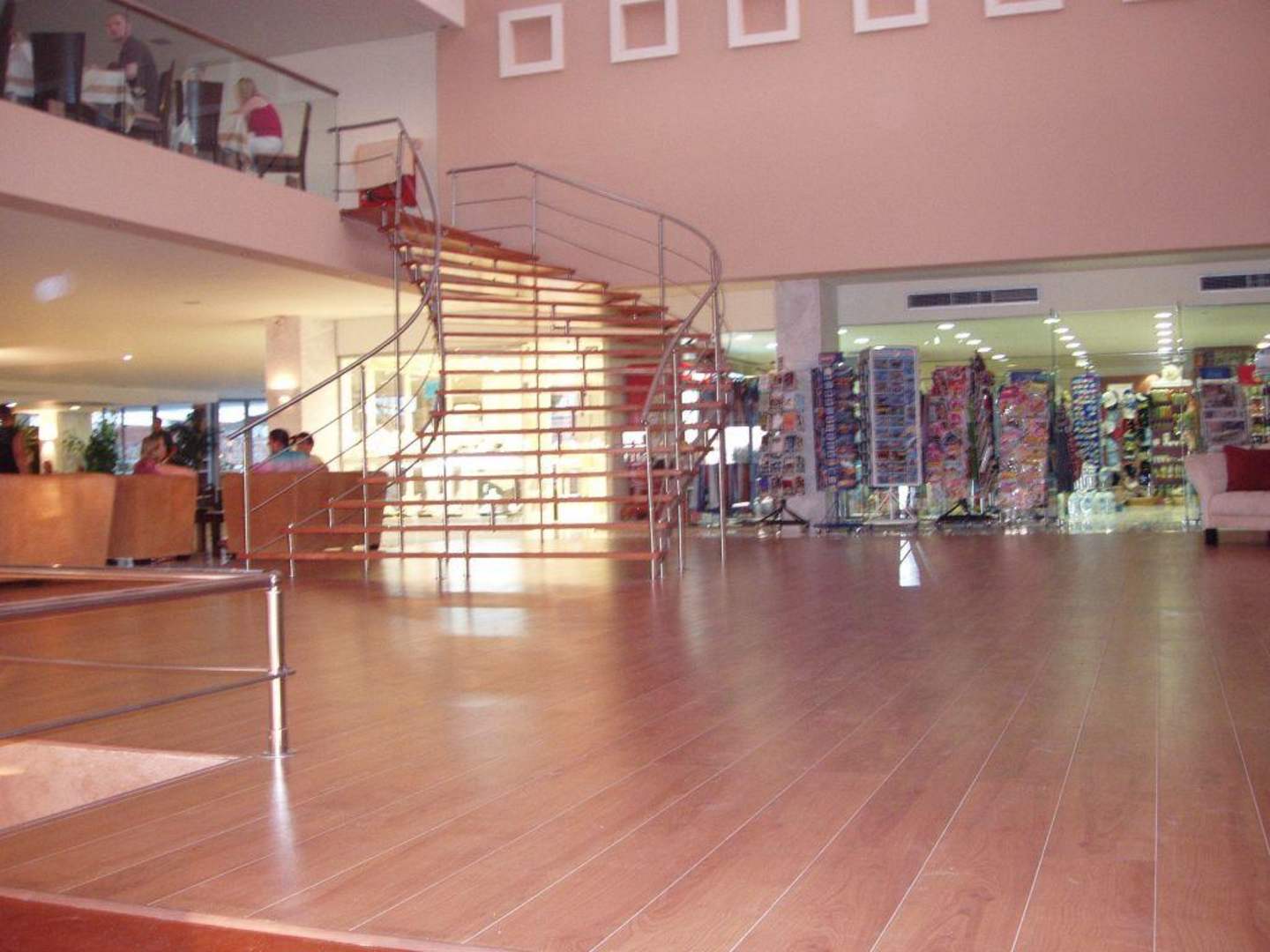 sichtbar: Hotelhalle mit Aufgang zum Restaurant, sowie Shops