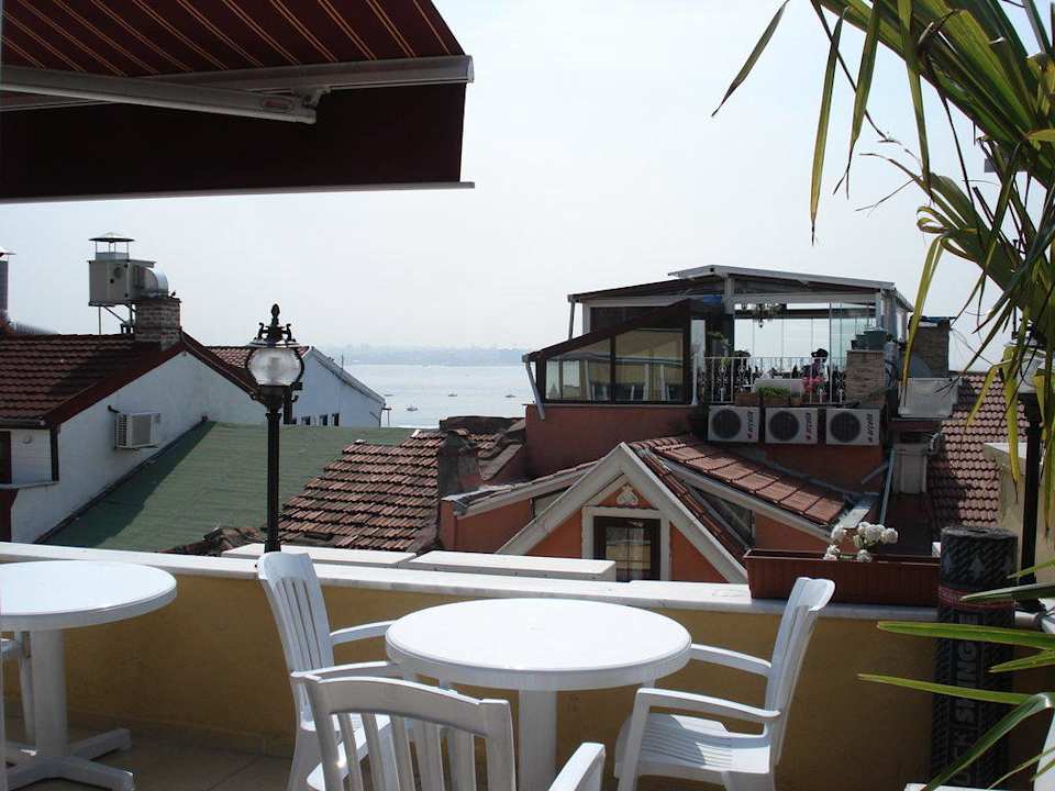 Von hier aus hatte man einen netten Blick zum Bosporus, den konnte man mit Frühstück genießen