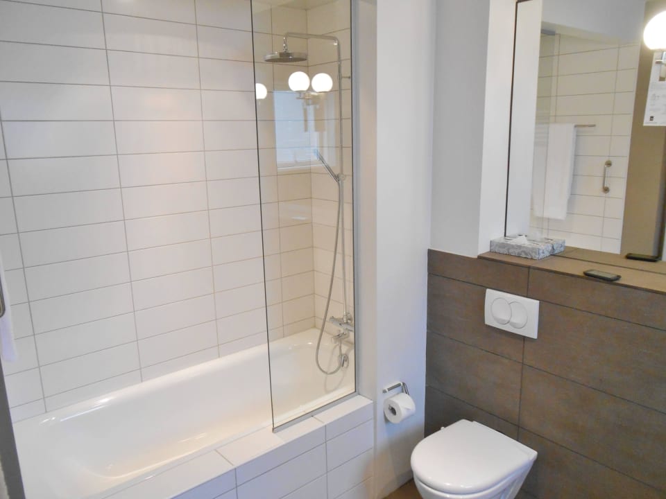 Badewanne mit Regendusche und Glastrennwand