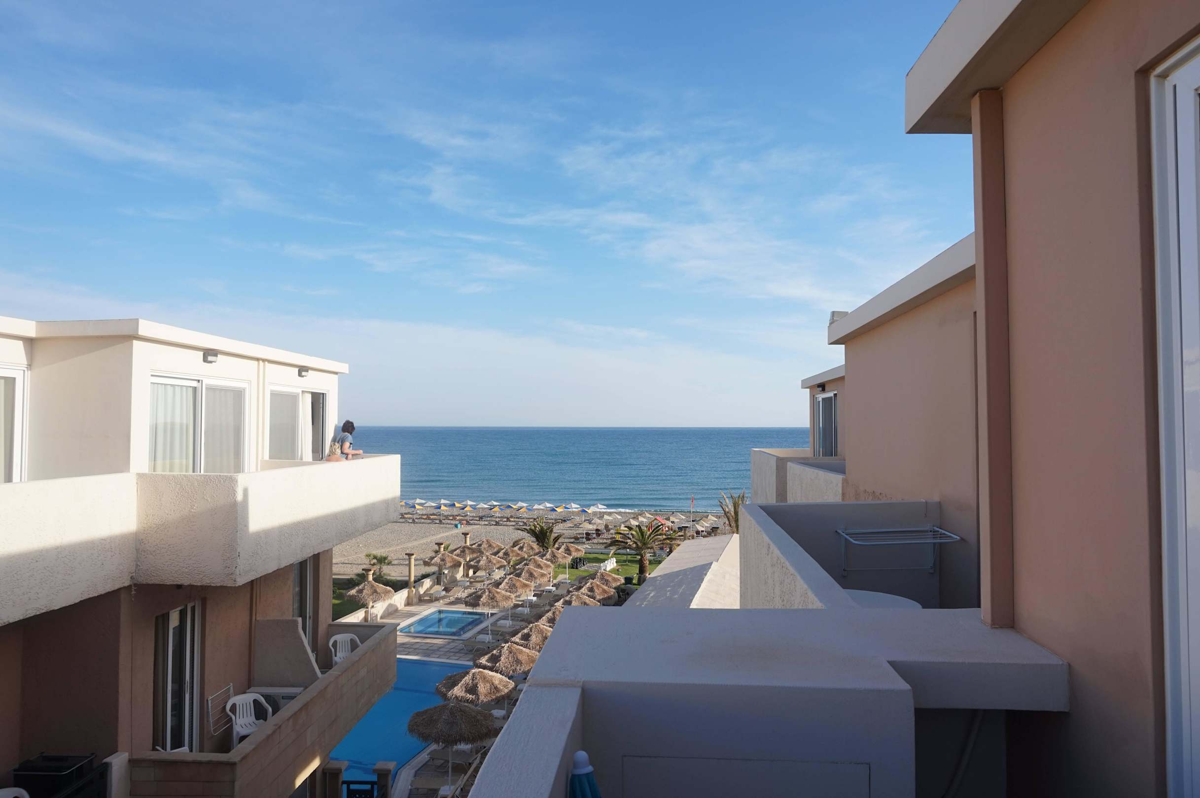Blick vom Balkon zum Strand