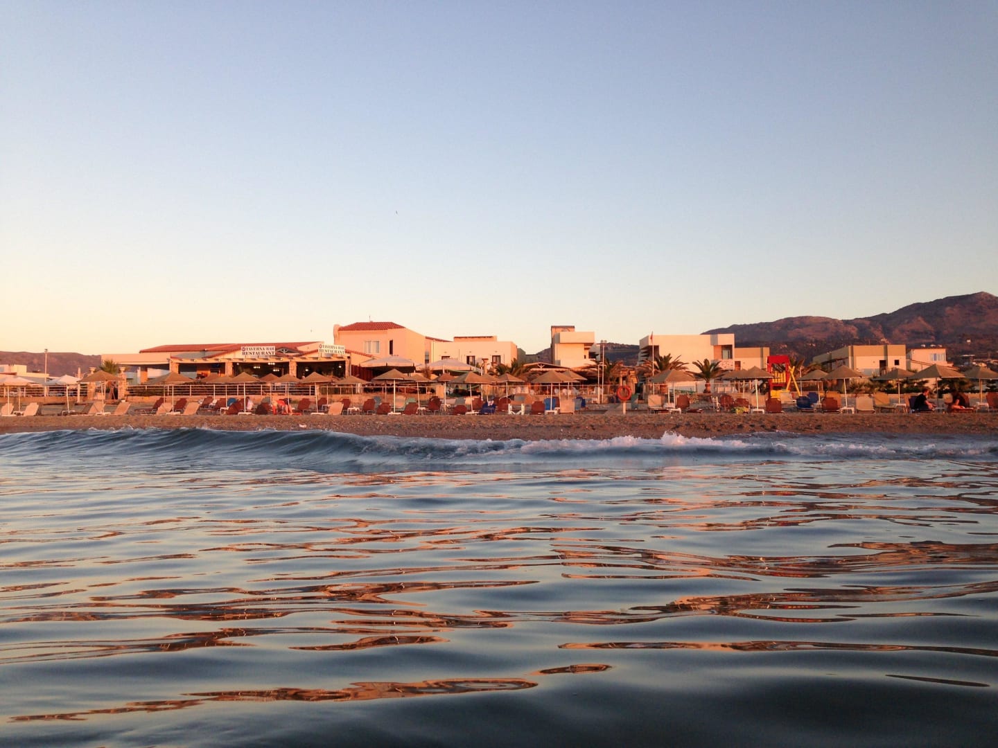 Beach and the hotel at sunset