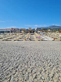 Blick vom Strand zum Hotel