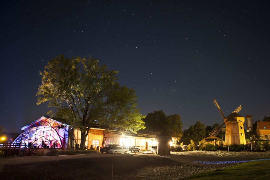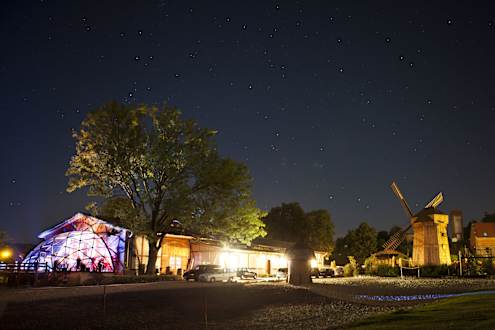 Olandia nocą: plaża, sala, wiatrak