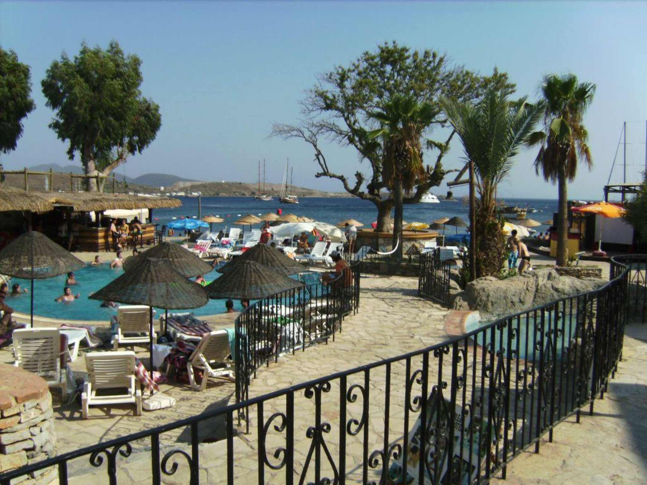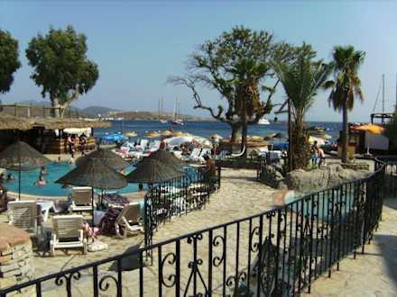 Das Bild zeigt das Außengelände, die Clubanlage Mit Pool und hoteleigenem Srtandabschnitt!