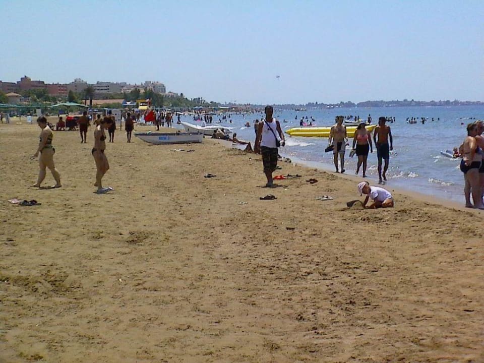 Strand am Oleander, Blick Richtung SideSchöner flach abfallender Sandstrand, Anfang Juli aber schon sehr voll da dort sehr dichte Hotelbebauung ist.