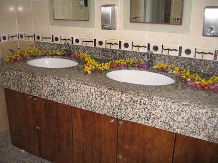 Geschmücktes WaschbeckenDas Waschbecken des Damen-WCs an der Strandbar war immer liebevoll mit Blumen geschmückt.