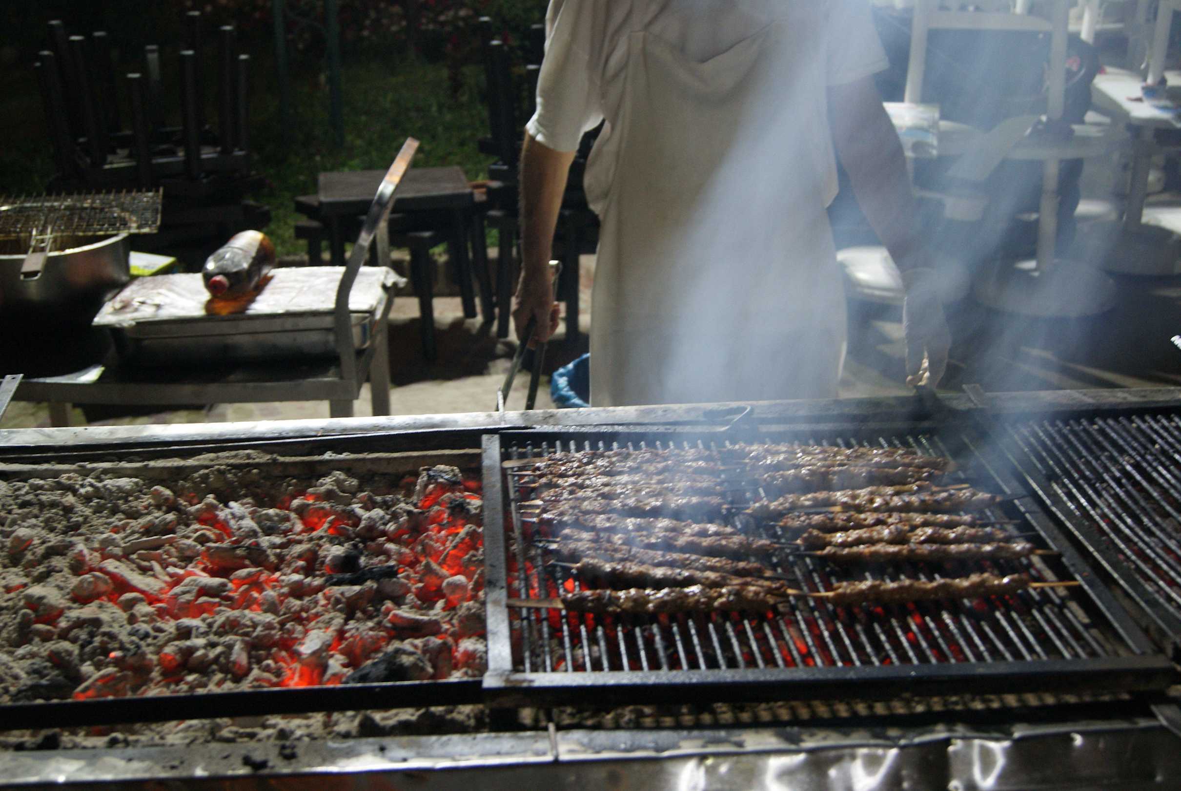 Frisch vom GrillDa lohnt sich das Warten,Spieße und Truthahnsteaks frisch vom Grill. Da hat man doch gerne etwas Zeit!