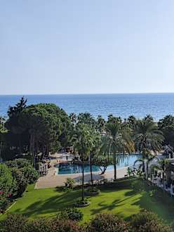 Doppelzimmer mit Meer- und Poolblick