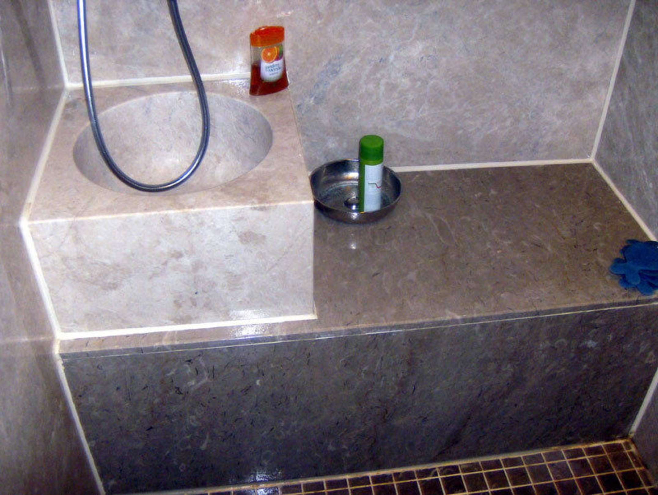 Teil der Dauschraumes mit Mini-Hamam im Komfortzimmer im Haus Flora