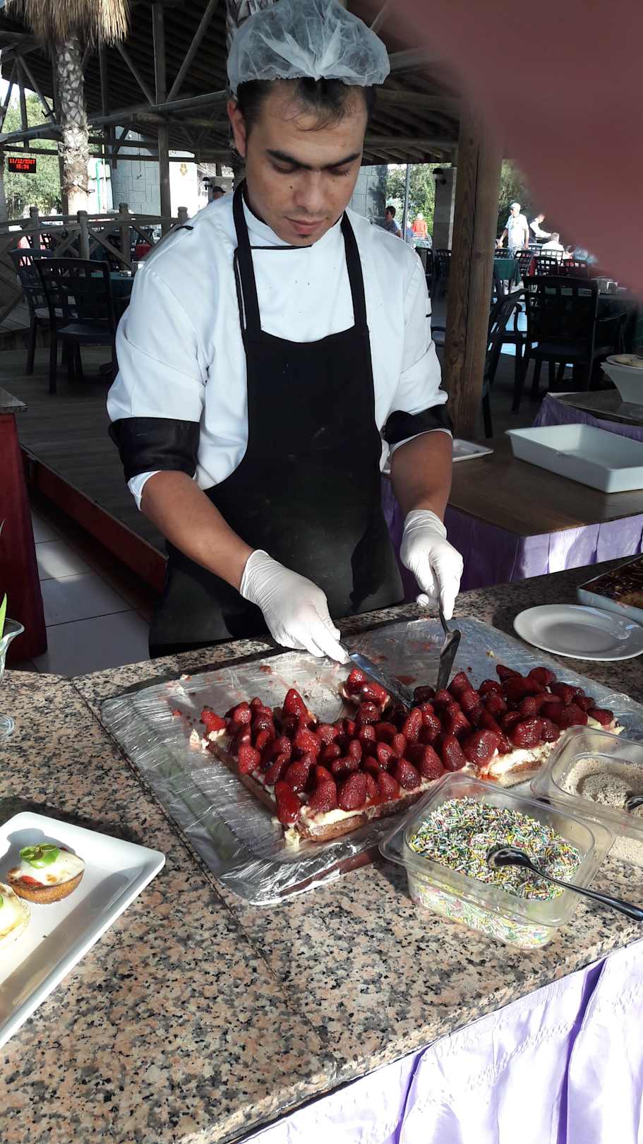 Hier werden die Erdbeerschnittchen vobereitet