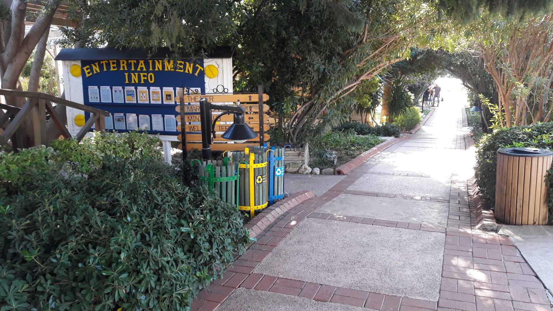 Weg zum Strand und links die Infotafeln