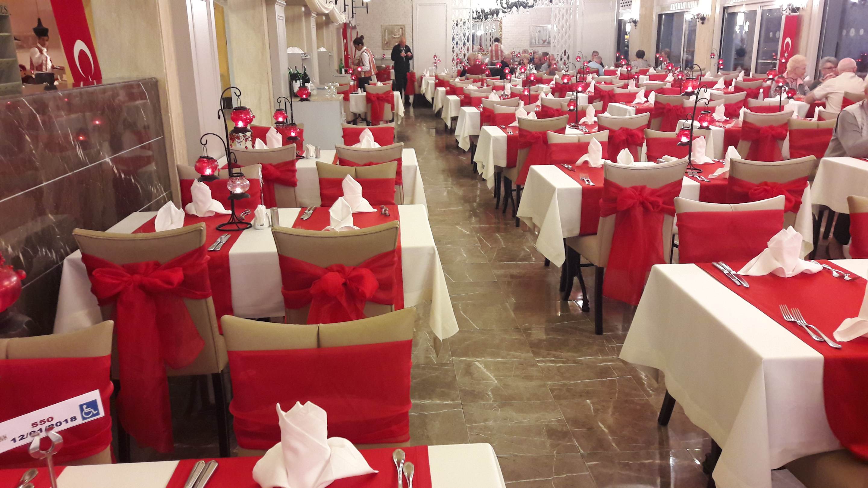 Rot und weiß geschmückt, sehr schön
