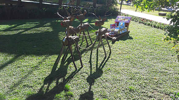 Renntiere mit Schlitten im Garten