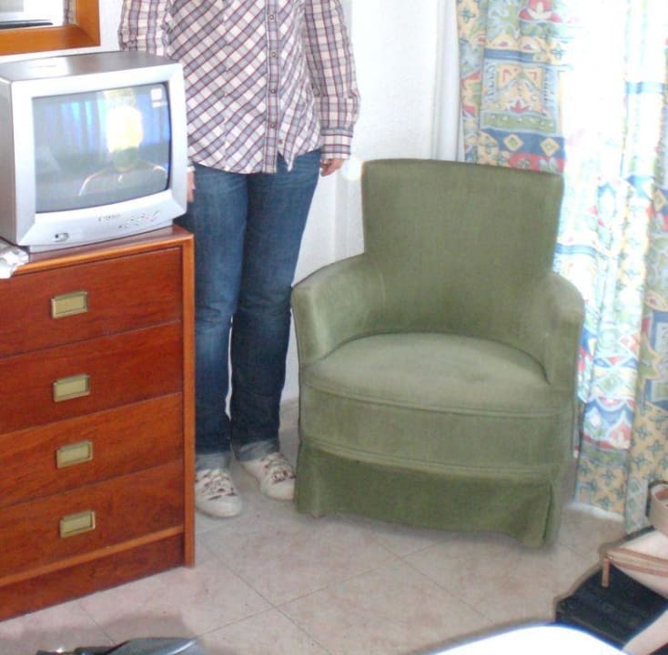 Mini-Sessel im ZimmerSehr gross sollte man nicht sein in diesem Hotel, so sieht das Sesselchen neben einer ca. 1,65 m grossen Person aus.