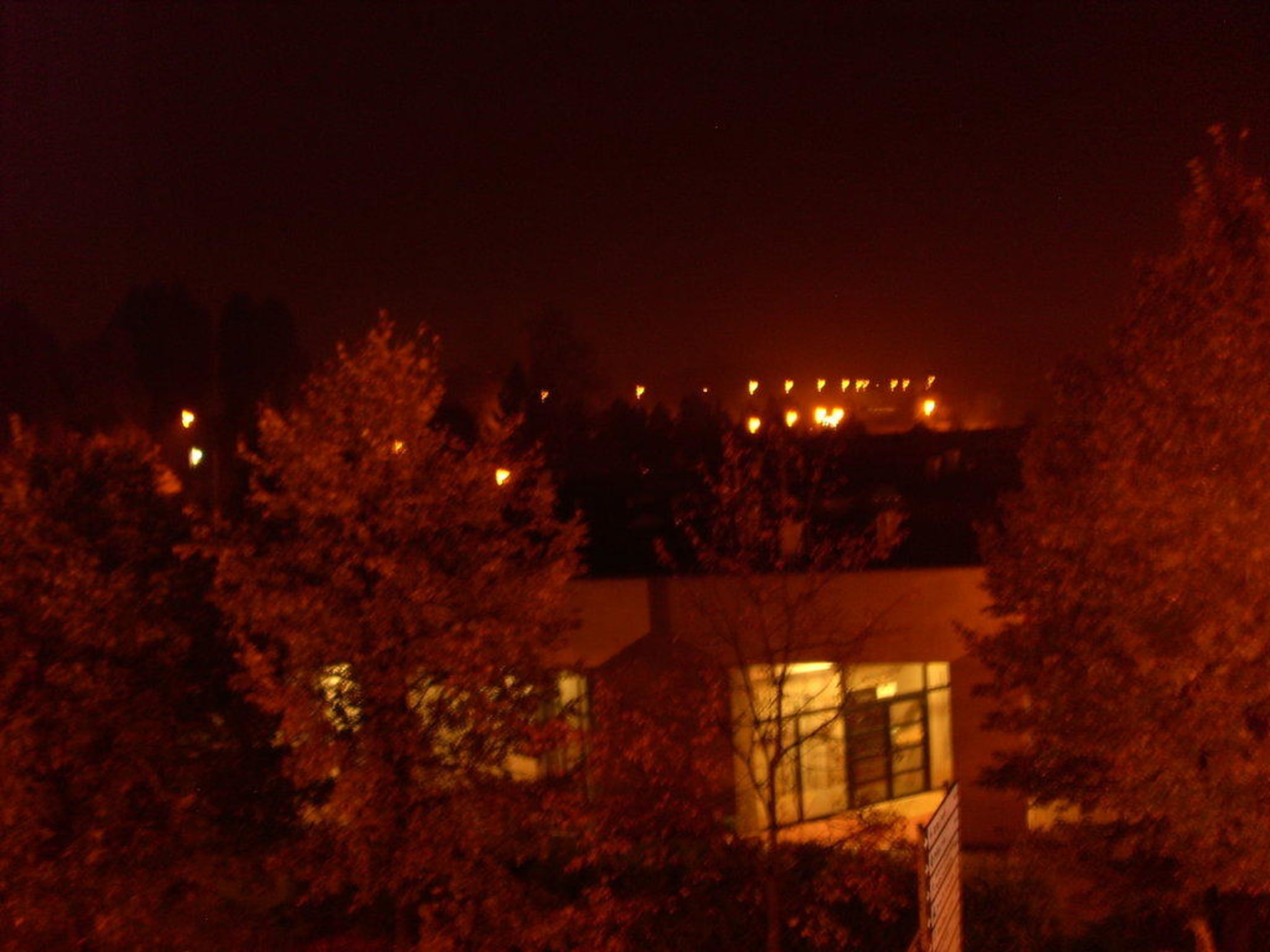 das KZ Auschwitz Stammlager bei Nacht.