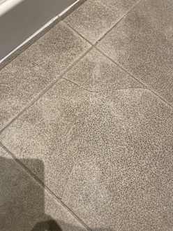 Kaputte Fliese auf dem Boden im Bad