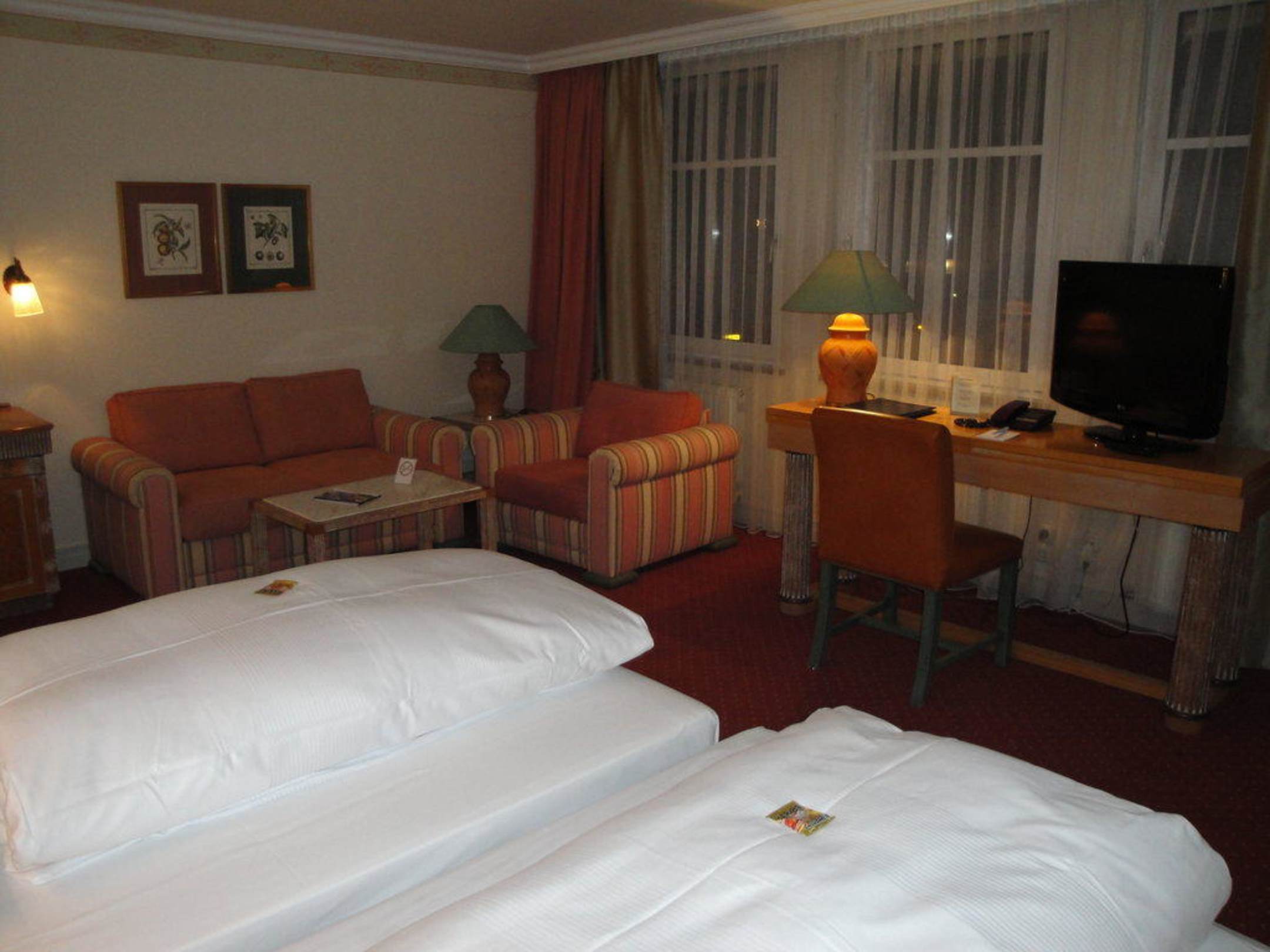 Sitzecke im ZimmerDas Sofa kann als Zusatzbett ausgezogen werden.
