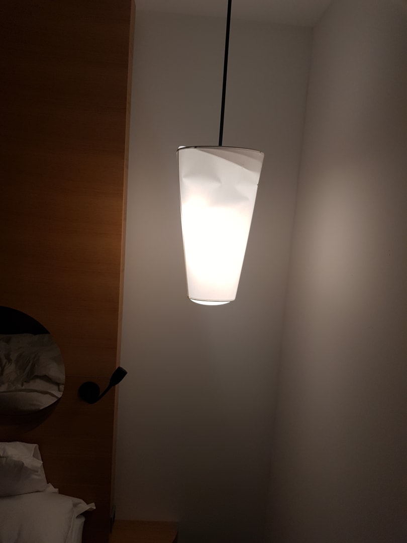 Diese Lampe hing kaputt im Zimmer