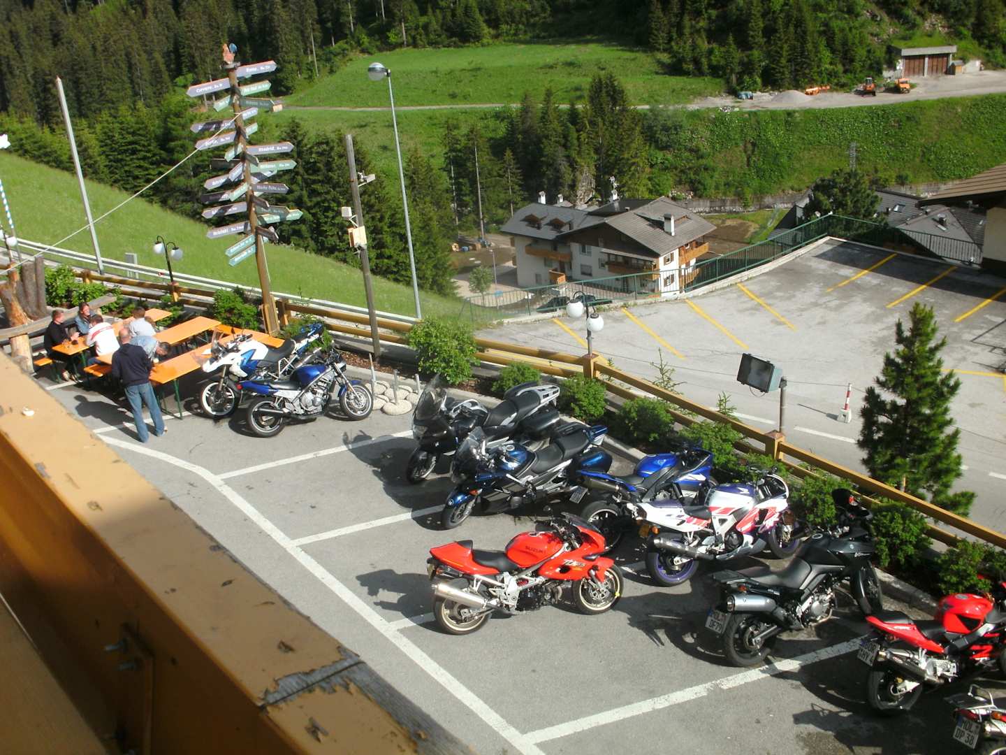 Blick von der Terrasse auf den Parkplatz
