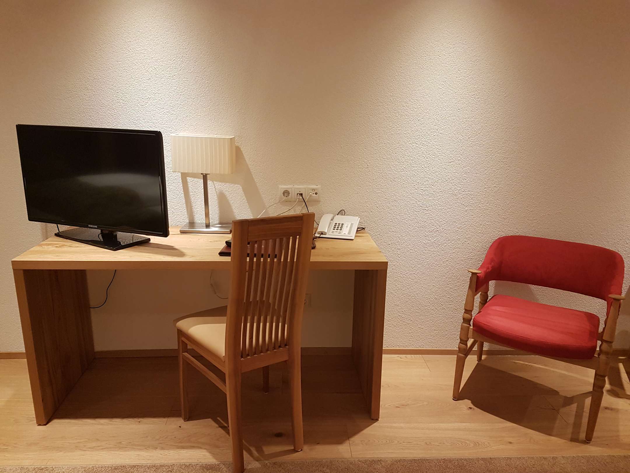 Schreibtisch, Fernseher, Telefon