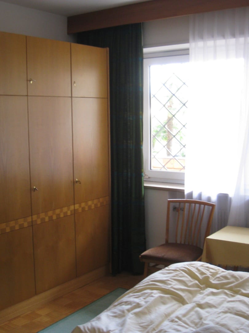 Schlafzimmer mit vergittertem Ausblick