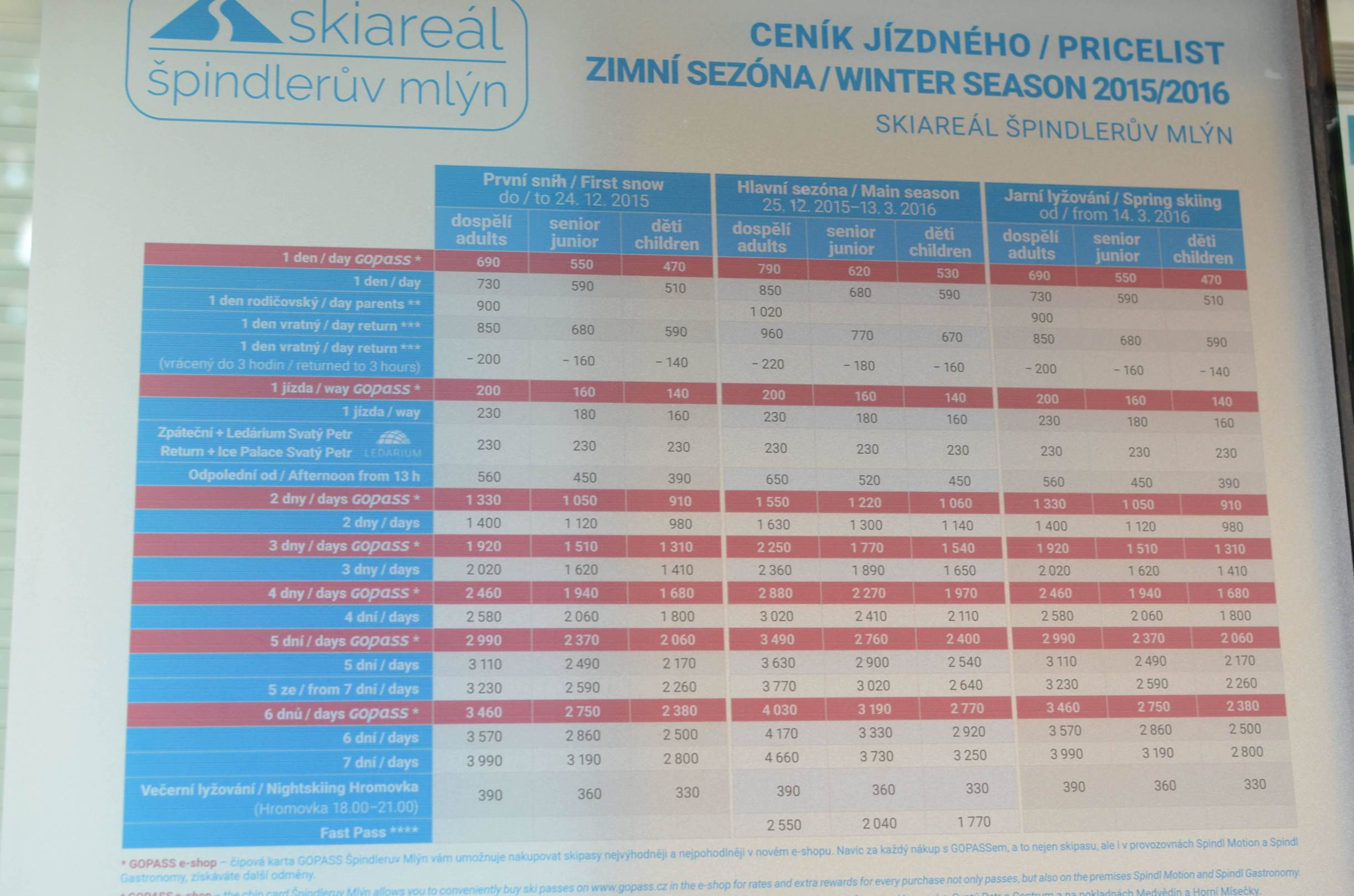 Preisliste Skipisten
