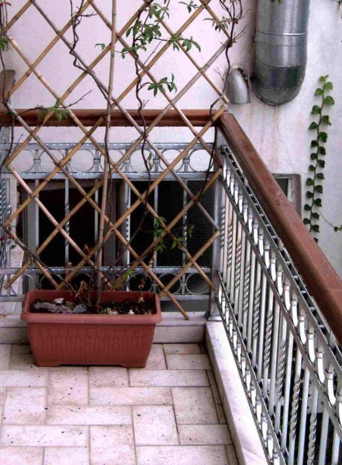 Der Balkon war 0,9 x 3,50 Meter mit seitlichen Blick auf einen Dunschabzug der Küche einer Taverne. Das Fenster war meistens offen und hat uns bis 3 Uhr Nachts durch laute Musik schlaflose Nächte bereitet