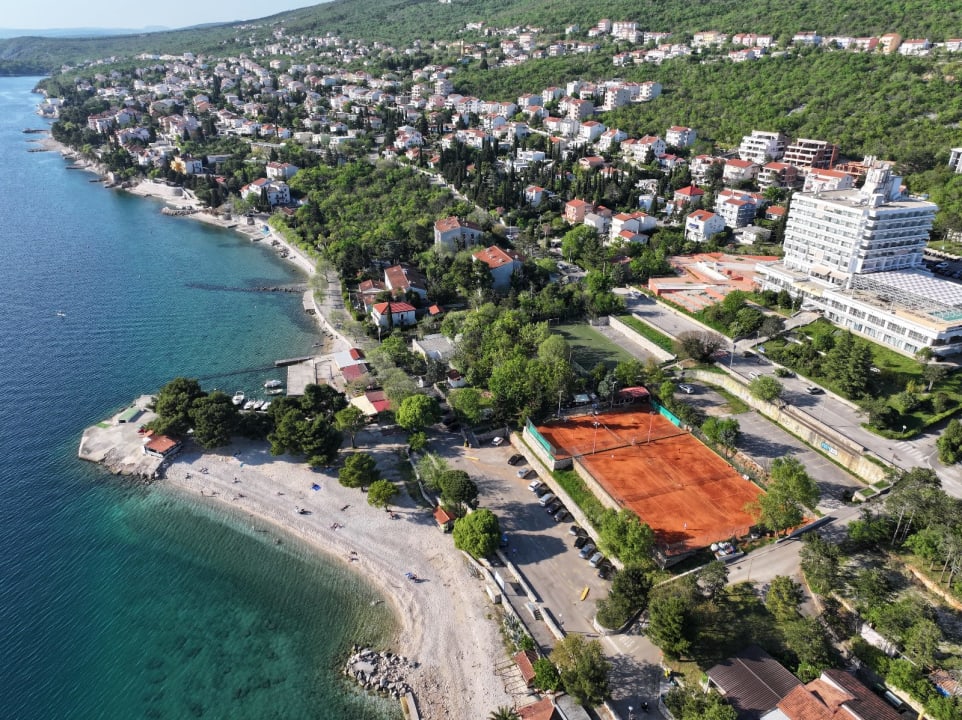 Ausblick auf Hotel, Tennisplätze (privater Vermieter) und Strand