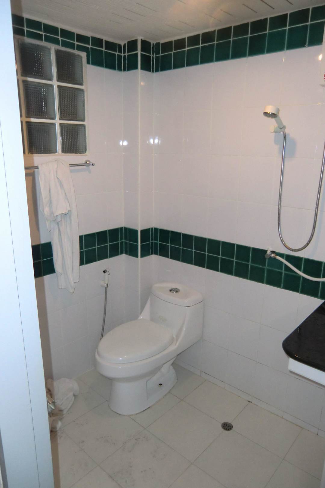 Als dusche hat man lediglich einen Duschkopf und am Fußboden einen Abfluß.