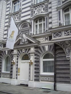Blick auf das Hotel mit eindrucksvoller Fassade.