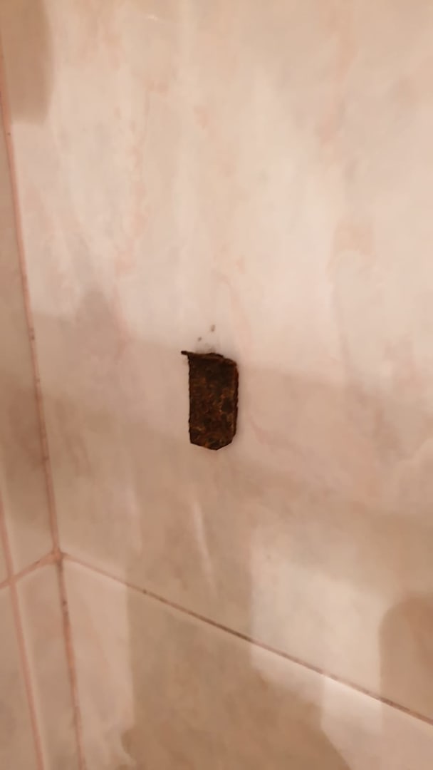 Rostige metallische Gegenstände an der Duschwand