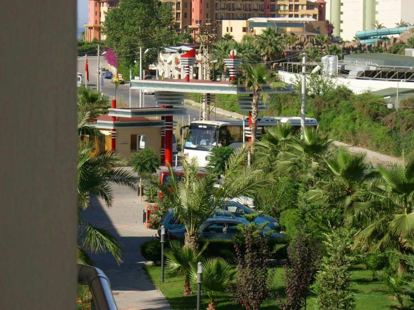 Ein Blick aus unserem Fenster auf den Haupteingang der Hotel-Anlage