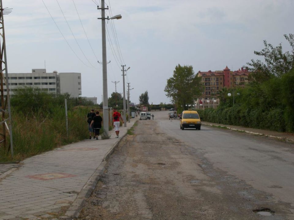 der Bürgersteig was hier zu sehen ist, also an der Straße entlang, ist mit einigen Löchern, also aufpassen!