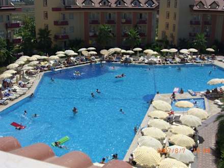 Poolansicht aus dem 1. Nebenhaus vom 4. Stock (Dachgeschoß)