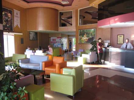 LobbyDurch die Tür im Hintergrund kommt man in den Innenbereich, wo es dann zu den einzelnen Wohnblöcken geht.